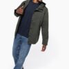 87% polyester (32% recyclé) / 13% polyamide. Boutons pression electrostatic paint et métal. Tissu déperlant. Zips en plastique et puller en métal. Poches latérales côtés à zips retournés (waterproof). Capuche panneaux, doublée en polyamide ripstop quadrillé. Bande auto-agrippante aux bas de manches + demi-élastique. Doublure intérieure en ripstop volante au dos pour faciliter la personnalisation. Finition biais à l’emmanchure, côtés vêtement et intérieur de manches. Œillets d’aération dos sous les manches. Élastique bas de vêtement, cordon de serrage avec stopper sur les côtés. Patte de boutonnage avec boutons pressions sur le milieu devant.
