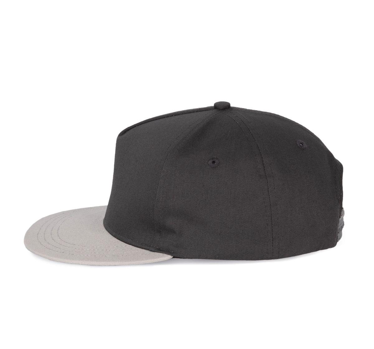 100% coton sergé. 5 panneaux. Visière plate. Languette de réglage en plastique.