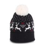 100% acrylique, bord 100% polyester. Bonnet aux motifs fantaisie rennes.