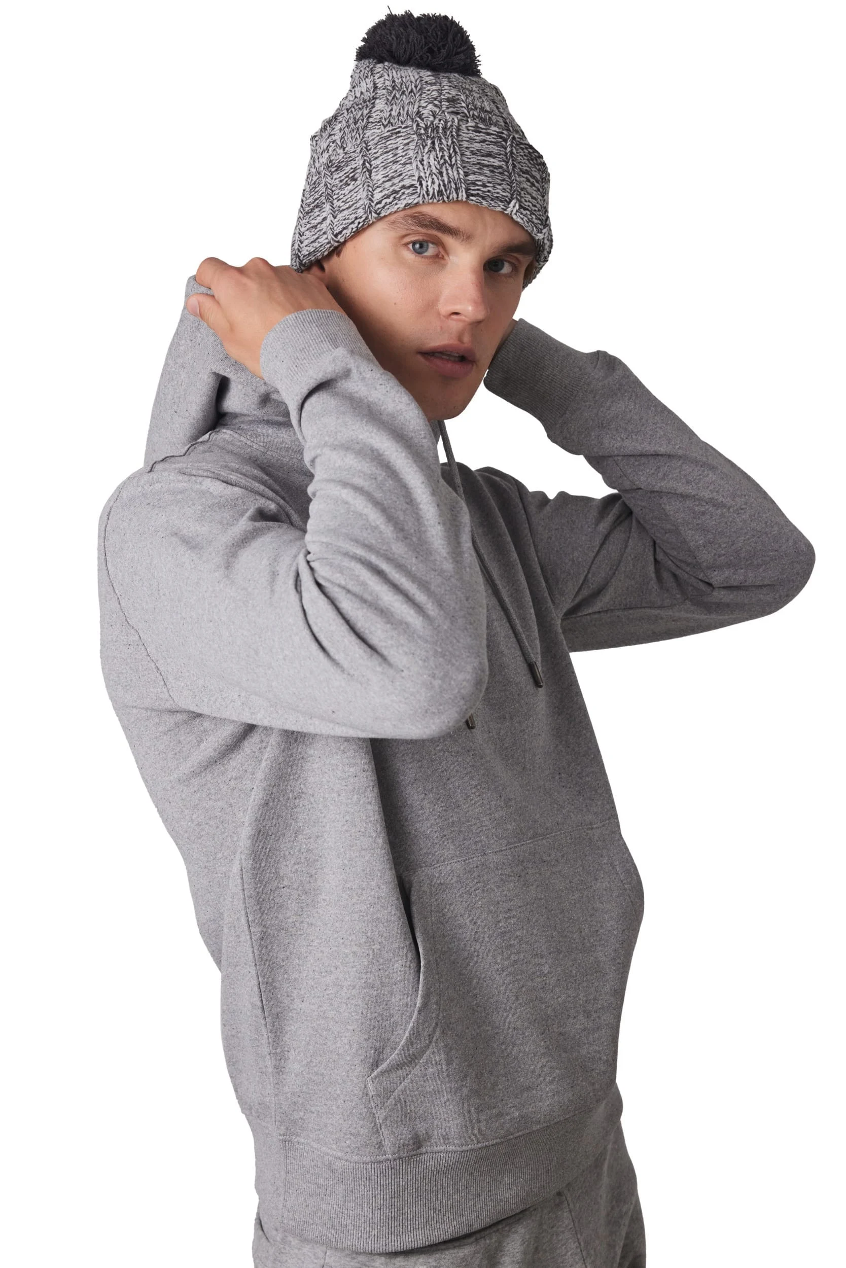 100% acrylique. Bonnet à pompon avec revers.