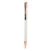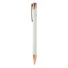Stylo à bille en aluminium recyclé avec finition caoutchoutée et détails en rose doré. Spécial pour gravure laser miroir de couleur rose doré. Encre bleue. Matieres : : Aluminium recyclé.