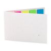 Marque-page faits sur mesure et recouverts de papier de semence. Comprend 100 marque-pages en film plastique de 5 couleurs assorties (44 × 12 mm). Le prix comprend la couverture extérieure imprimée en quadri. Quantité minimale : 100 pièces. Avec un assortiment de graines de fleurs sauvages. Matieres : : Papier semences , Plastique.