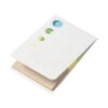 Bloc-notes autocollant en papier recyclé recouvert de papier graine avec 10 notes et 30 marqueurs de page (en 3 couleurs différentes). La couverture en papier graine contient des graines de pétunia de couleurs assorties, qui peuvent être plantées en séparant la couverture du bloc-notes. Matieres : : Papier semences , Papier recyclé.