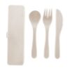 Set de 3 couverts en plastique PP dans un étui de couleur assortie. Comprend une fourchette, un couteau et une cuillère. Matieres : : Plastique (PP).