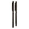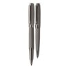 Parure stylo à bille et roller en métal avec motifs sur le corps. Livrée dans un coffret noir cadeau. Encre bleue. Produit de la marque André Philippe. Matieres : : Métal.