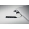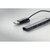 Hub USB 4 ports en aluminium recyclé. 3 USB-A + 1 Type-C. Entrée : 2-en-1 Type-C & Type-A. Longueur du câble : 19 cm.
