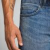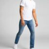 77% coton / 21% polyester / 2% élasthanne. Combinaison ultime entre confort extrême, liberté de mouvement et denim authentique. Coupe ajustée. Ouverture de jambe étroite. Taille élastiquée. Tissu recyclé.