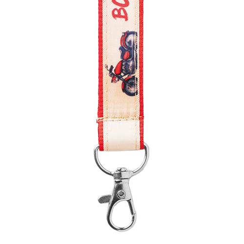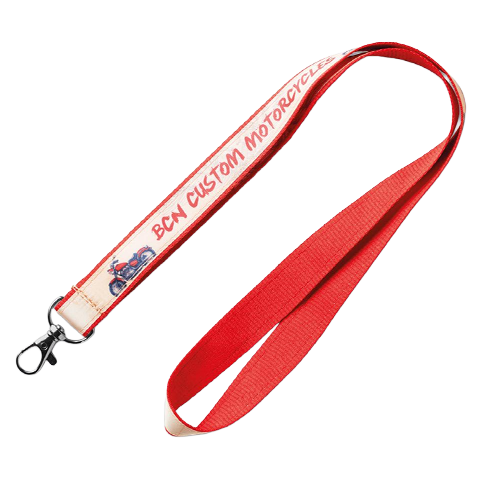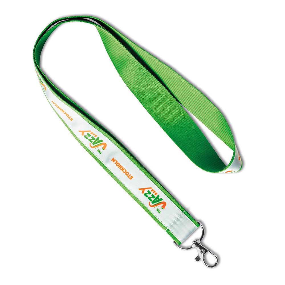 Tour de cou fabriqué en polyester avec une superposition en satin et un mousqueton en métal ou choisissez parmi les autres options de clip.