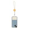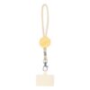 Support porte-téléphone en coton avec étiquette ronde en bambou, insert pour téléphone et mousqueton en métal. Matieres : : Coton , Bambou , Métal.