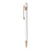 Stylo à bille en aluminium recyclé avec corps caoutchouté et attributs or rosé. Avec revêtement spécial pour gravure laser miroir en or rosé. Encre bleue. Matieres : : Aluminium recyclé.