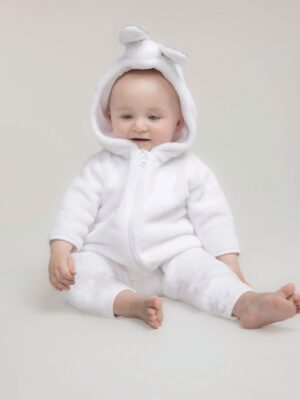 100% polyester. Combinaison lapin à capuche pour enfant ultra doux avec oreilles, yeux et nez de lapin. Zip central partant du cou jusqu’à mi-jambe. Bord côte aux poignets et aux chevilles.