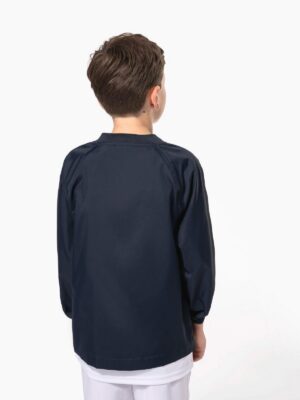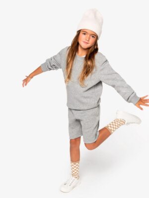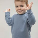60% coton régénéré / 40% polyester recyclé. Sweat-shirt fabriqué à partir de tissu durable. Coutures flatlock en V à l’encolure. Fermeture à bouton-pression YKK sur l’épaule (sauf pour 3/4 ans et 5/6 ans).