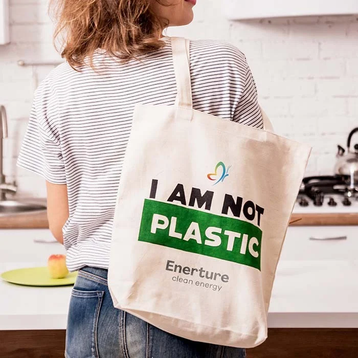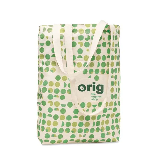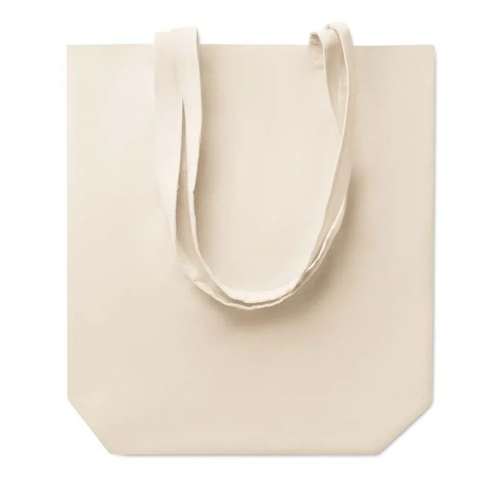 Sac shopping en coton avec fond et longues anses. Choisissez parmi les différents grammages disponibles, faites produire les sacs en coton dans leur couleur naturelle ou teintés dans la couleur de votre logo et commencez à concevoir.