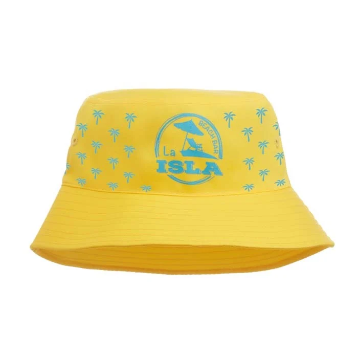 Bob en polyester 170gsm avec un bord d’environ 6cm et vos motifs imprimés ou brodés.