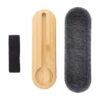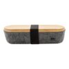 Porte-stylo feutre RPET avec couvercle en bambou et sangle élastique avec règle et support de téléphone portable intégré. Matieres : : Bambou , Feutre en PET recyclé.