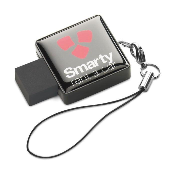 Forme Carrée. Clé USB avec boîtier ABS noir. Design spécial pour le doming. Délai de livraison : 15 jrs ouvrés. Marquage quadri doming inclus. Option marquage: Doming. MOQ pour pantone 500 Pcs