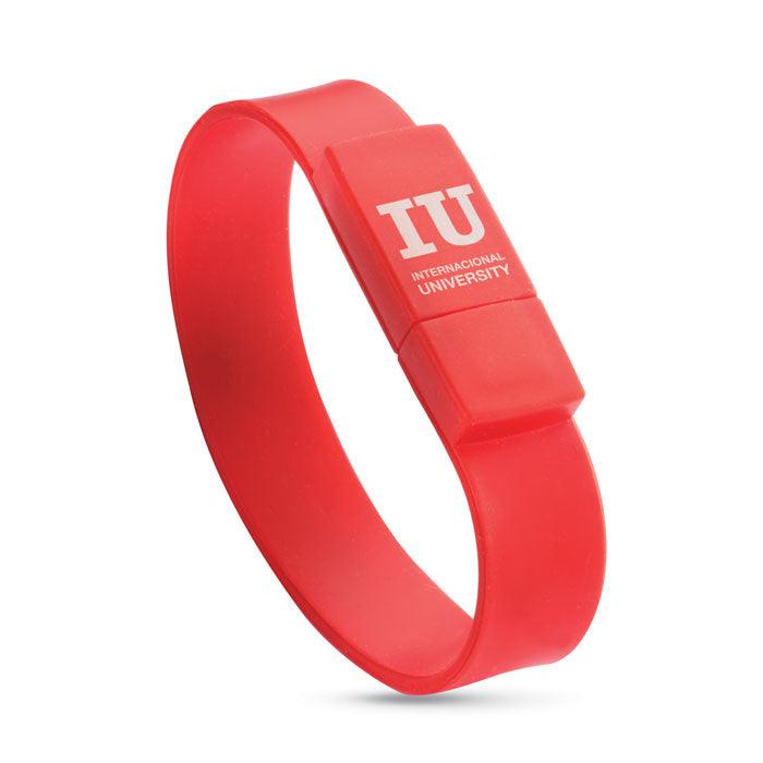 Clé usb incuse dans un bacelet en silicone. DEEE & SORECOP non incluses. Délai de livraison : 15 jrs ouvrés. Option marquage: sérigraphie (max 2 couleurs). MOQ pour pantone 1000 Pcs.