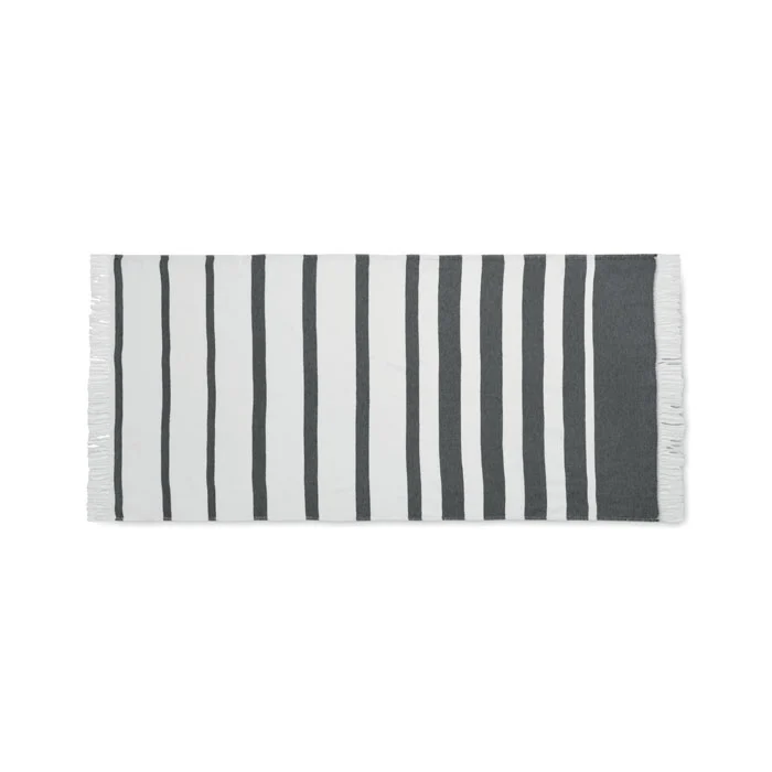 Serviette de hammam ou de plage en tissu recyclé. 70% coton recyclé et 30% polyester recyclé polyester SEAQUAL® YARN. 300 gr/m². 70×140 cm. SEAQUAL INITIATIVE travaille avec des opérations de nettoyage des océans dans le monde entier pour valoriser les déchets qu’ils récupèrent. qu’ils récupèrent. Fabriqué dans l’UE.