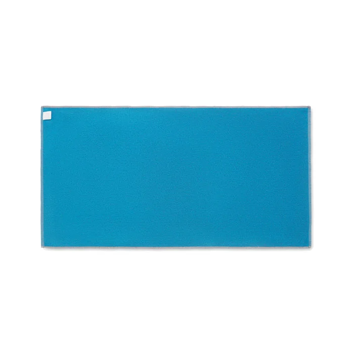 Serviette de bain ou de plage jacquard en tissu recyclé. 70% coton recyclé et 30% polyester recyclé polyester recyclé SEAQUAL®. 500 gr/m². 70×140 cm. L’INITIATIVE SEAQUAL travaille avec des organisations de nettoyage des océans dans le monde entier pour valoriser les déchets qu’elles récupèrent. Fabriqué dans l’UE.