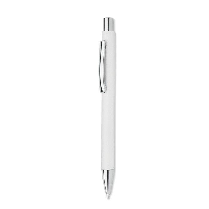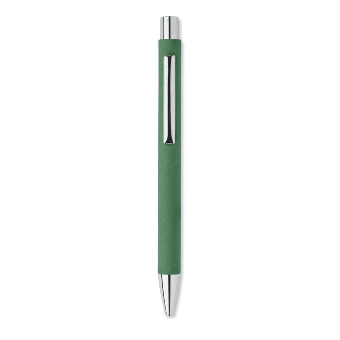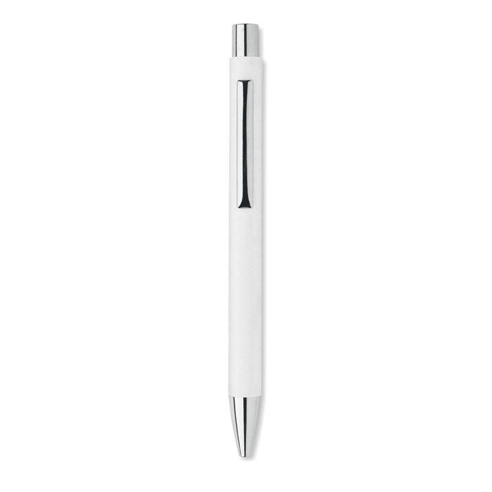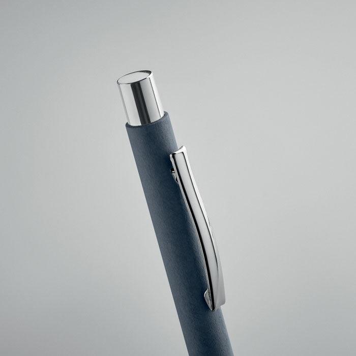Stylo à bille à bouton poussoir en papier recyclé et clip en métal. Encre bleue.