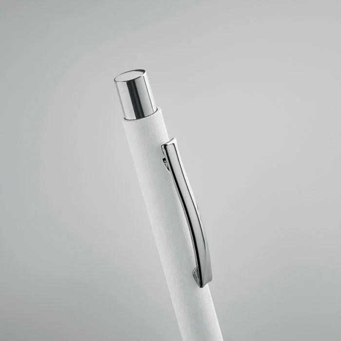 Stylo à bille à bouton poussoir en papier recyclé (50%)et clip en métal. Encre bleue. FSC®-certified | FSC RECYCLED, P9, FSC-C213206