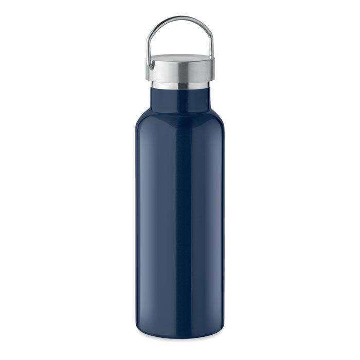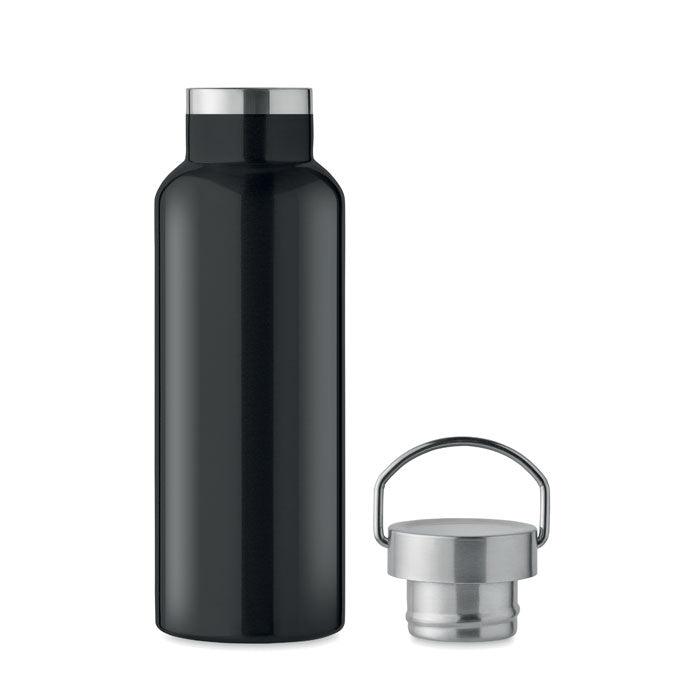 Bouteille à vide isolant à double paroi en acier inoxydable recyclé (90 % d'acier inoxydable recyclé et 10 % d'acier inoxydable) avec couvercle et poignée. Anti fuite. Capacité : 500 ml.