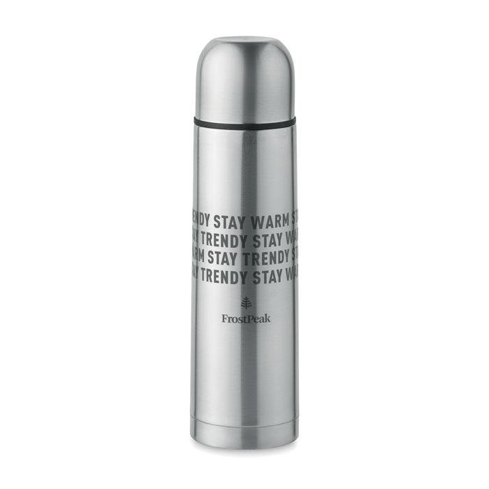 Bouteille à double paroi en acier inoxydable recyclé (90 % d'acier inoxydable recyclé et 10 % d'acier inoxydable). Anti fuite. Capacité : 500 ml.
