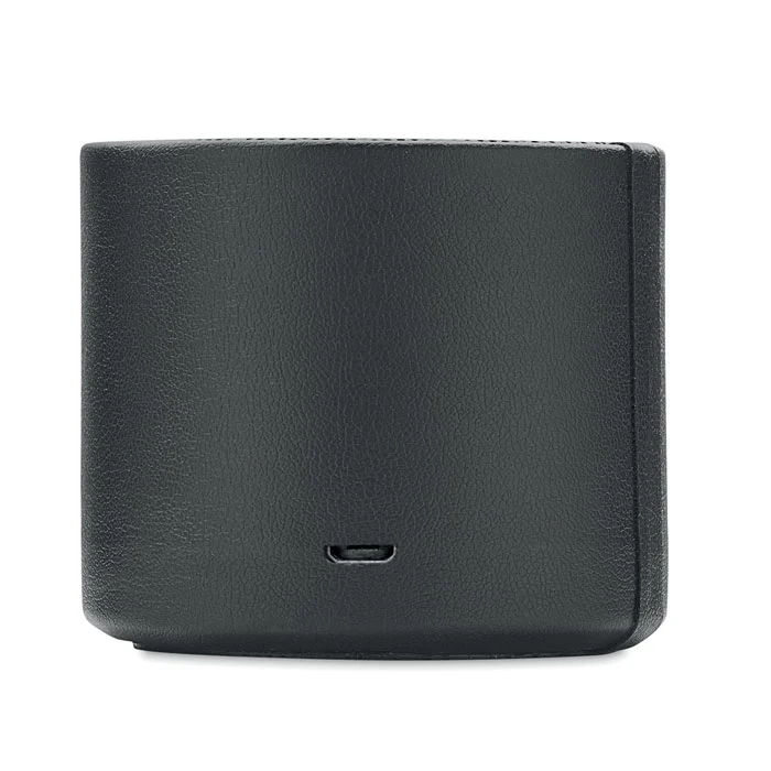 Haut-parleur sans fil 5.0 avec boîtier en ABS et PU recyclé à 58 % (40 % de polyester recyclé et 18 % de PU recyclé) et témoin lumineux LED. Sortie : 3W, 3 Ohm et 5V. Durée d’écoute : environ 3 heures.