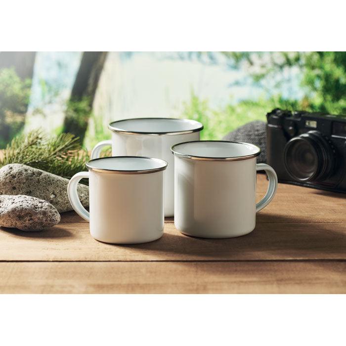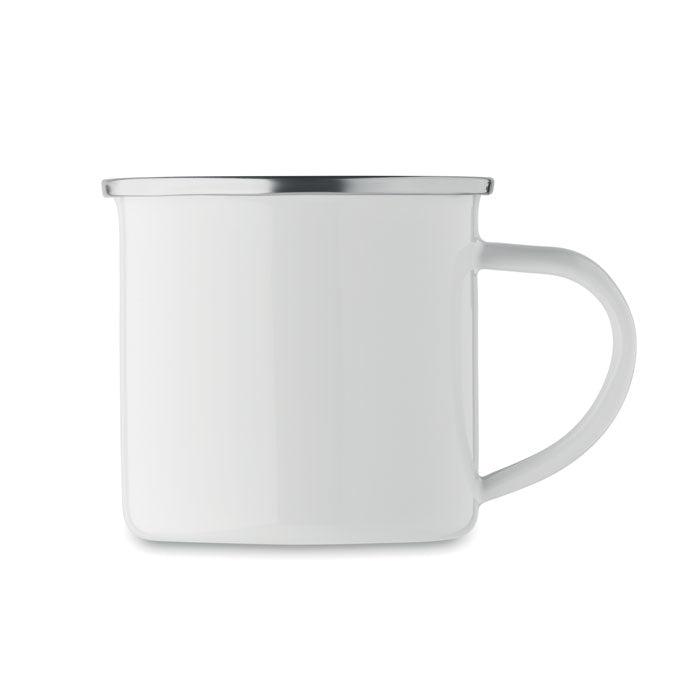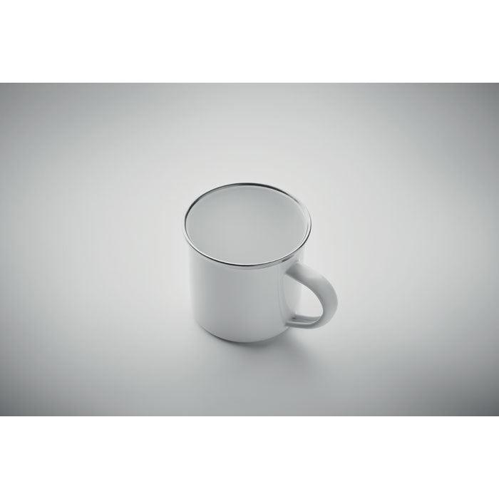 Mug vintage en métal avec couche d'émail idéal pour la sublimation. Capacité de 200 ml.
