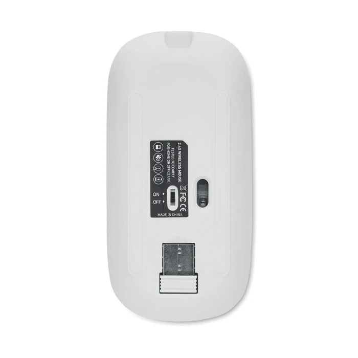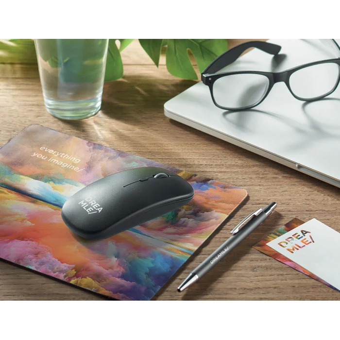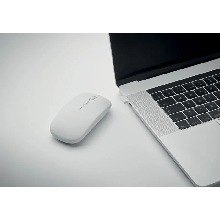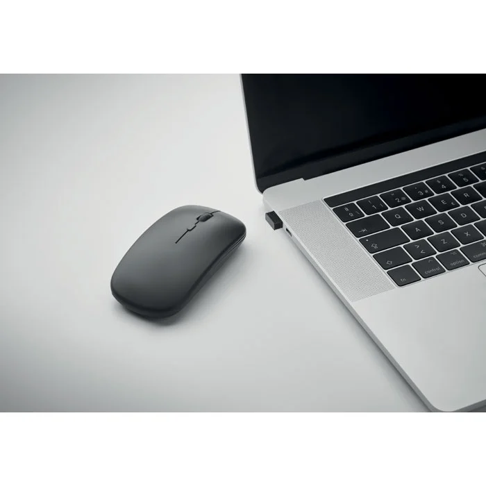 Souris optique sans fil en ABS recyclé avec batterie USB rechargeable de 500 mAh.