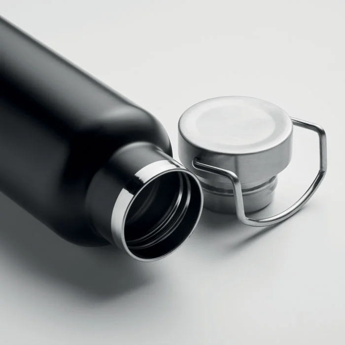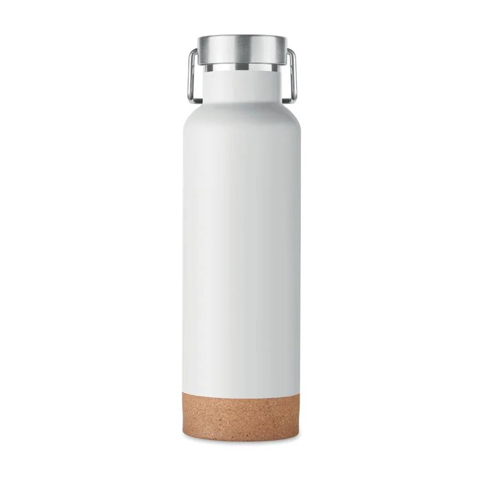 Bouteille à double paroi à vide isolant en acier inoxydable recyclé et base en liège avec bouchon à poignée. Anti fuite. Capacité : 500 ml. (90 % d’acier inoxydable recyclé et 10 % d’acier inoxydable).