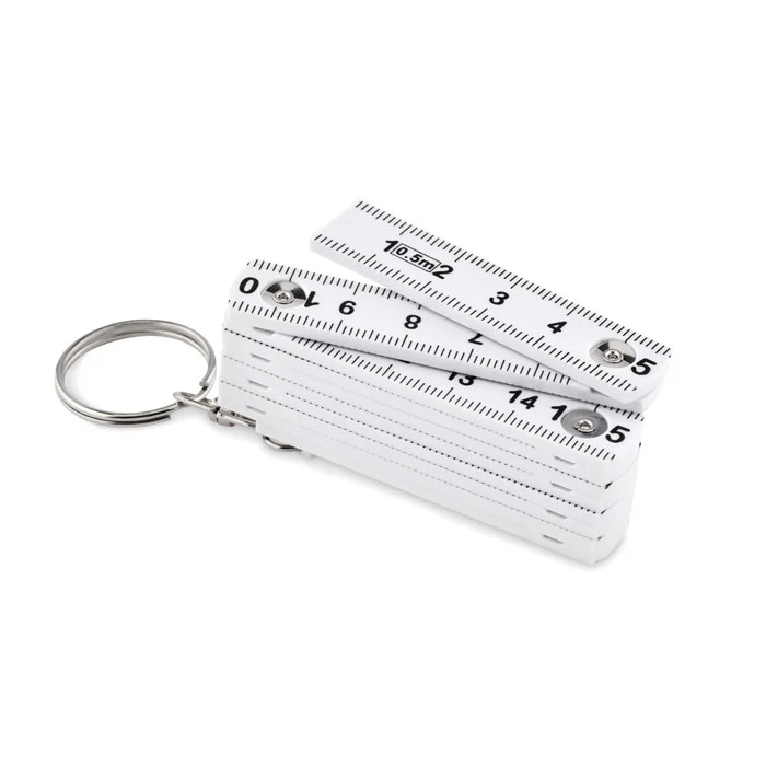 Porte-clés mètre pliant de charpentier en ABS. Longueur : 50 cm.