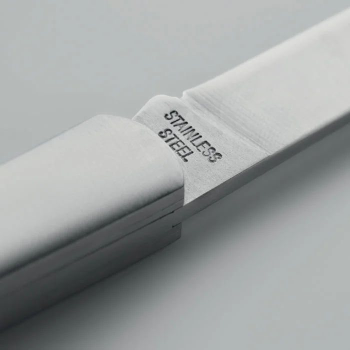 Couteau pliable en acier inoxydable avec manche en bois d’acacia. Longueur de la lame : 6 cm.