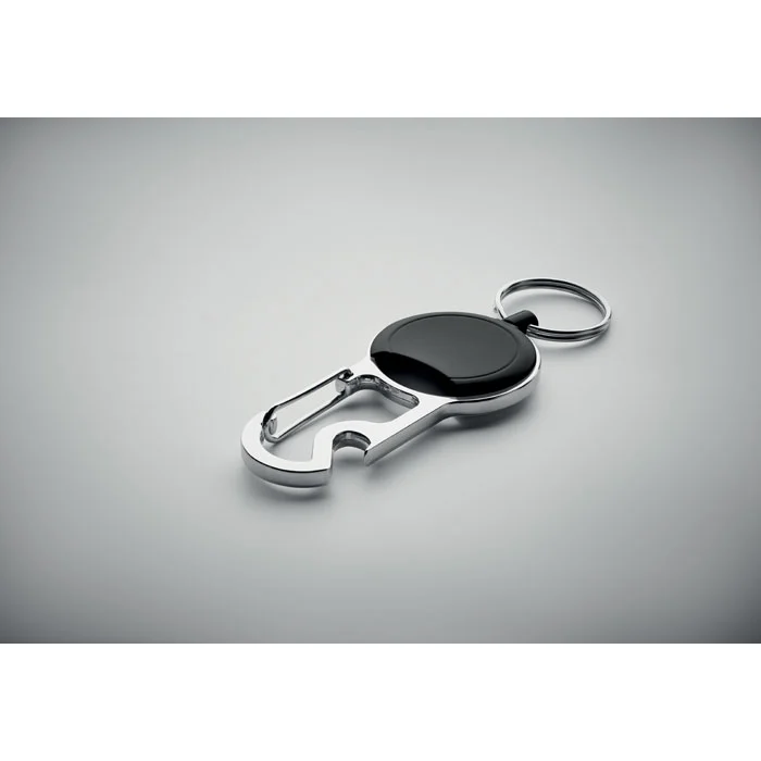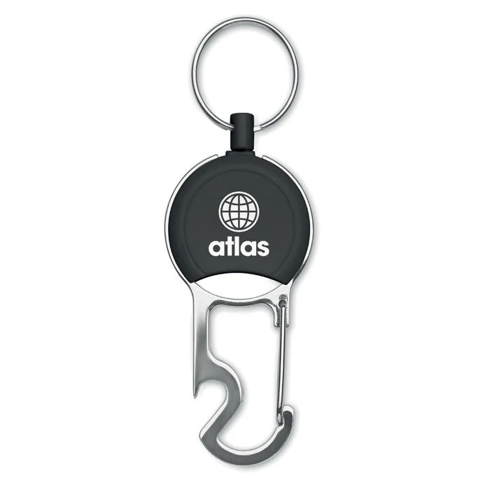 Porte-badge rétractable en ABS avec clip, porte-clés et décapsuleur.
