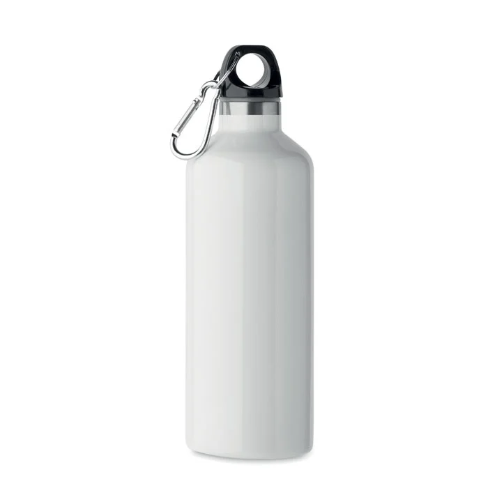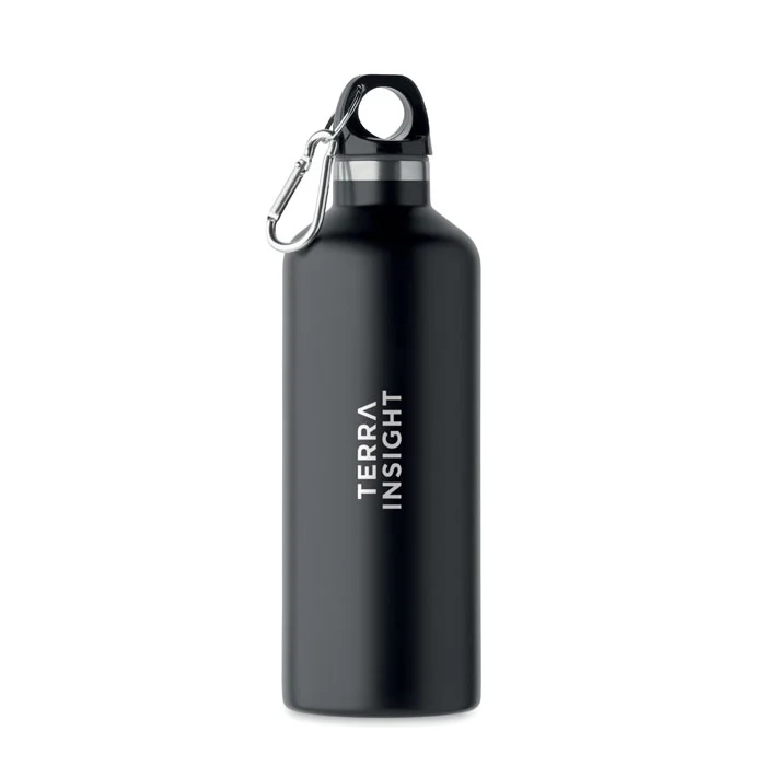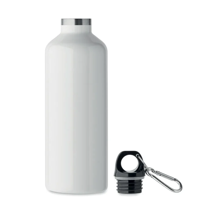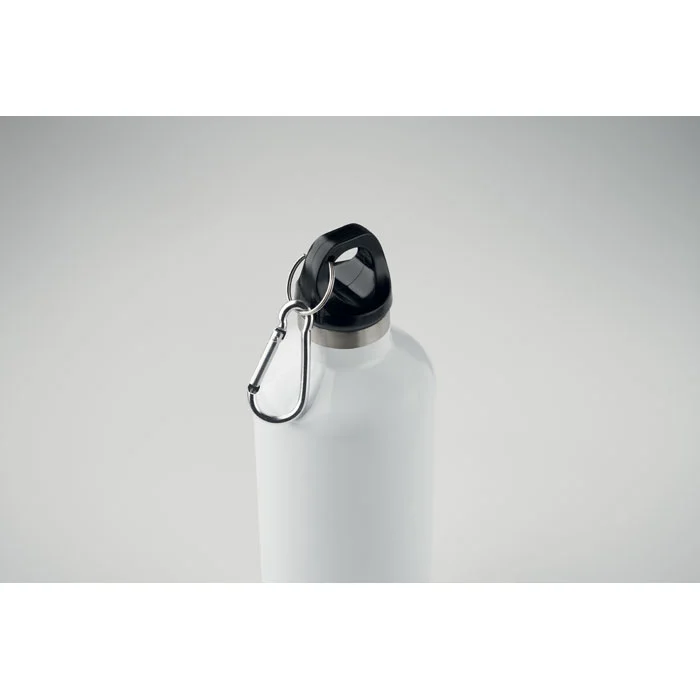 Bouteille isolante sous vide à double paroi en acier inoxydable recyclé (90 % d’acier inoxrecyclé et 10 % d’acier inox) avec couvercle à poignée mousqueton. Le mousqueton n’est pas destiné à l’escalade (usage non professionnel). Anti fuite. Capacité : 500 ml.