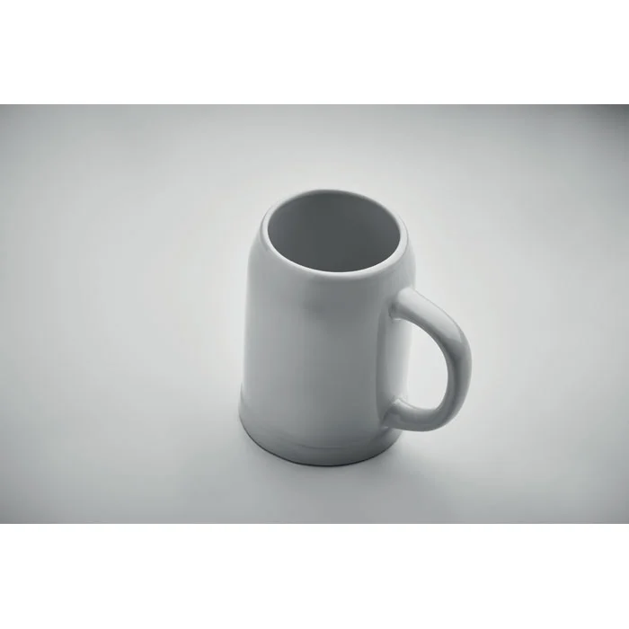 Chope de bière en céramique avec revêtement spécial pour la sublimation. Capacité : 500 ml.