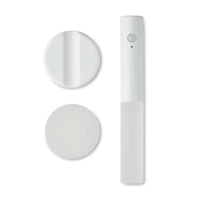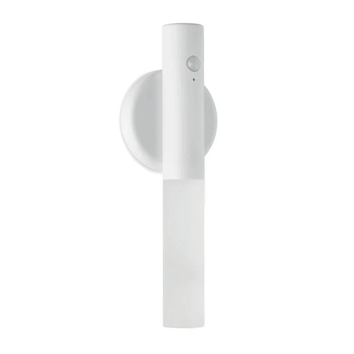 Lampe à capteur de mouvement en ABS et acrylique avec base magnétique. Batterie rechargeable de 300 mAh intégrée et câble de chargement. La base peut être fixée au mur à l’aide de l’autocollant 3M inclus.Idéal pour les placards, chambre d’enfant, couloirs…