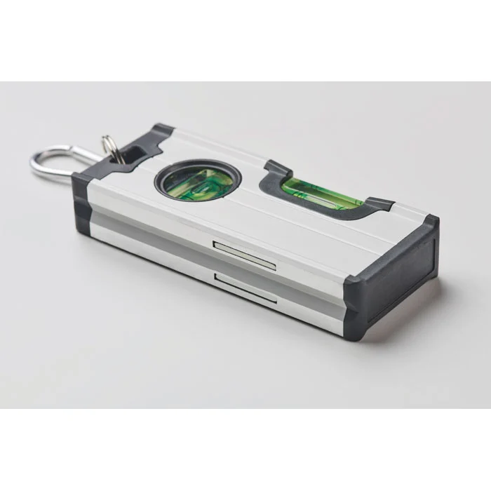 Mini niveau à bulle magnétique double dans un boîtier en aluminium avec mousqueton. Le mousqueton n’est pas destiné à l’escalade (usage non professionnel).