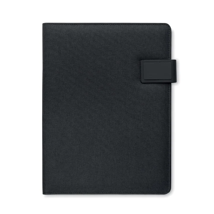Conférencier A4 avec couverture en polyuréthane. Power bank de 5000 mAh et chargeur magnétique sans fil de 15W. bloc-notes de 20 feuilles lignées. Plusieurs compartiments internes. Fermeture magnétique. Porte-stylo élastique.