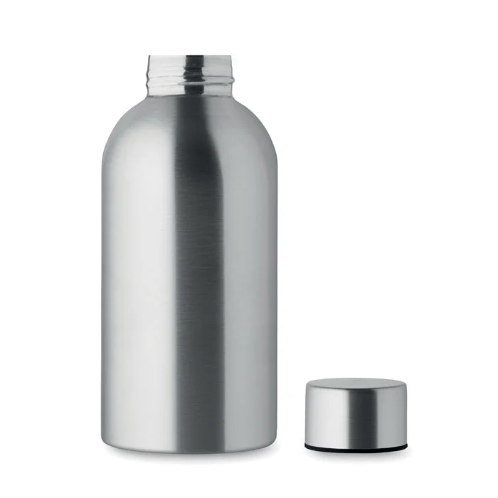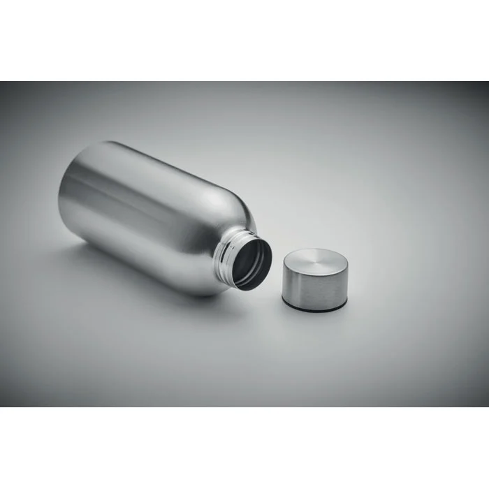 Bouteille à simple paroi en acier inoxydable recyclé (90 % d’acier inoxydable recyclé et 10 % d’acier inoxydable). Anti fuite. Capacité de 500 ml. Comme il s’agit d’un flacon à paroi simple, un transfert de chaleur peut encore se produire.
