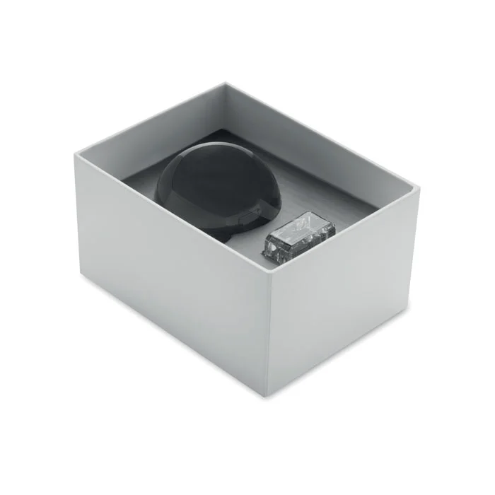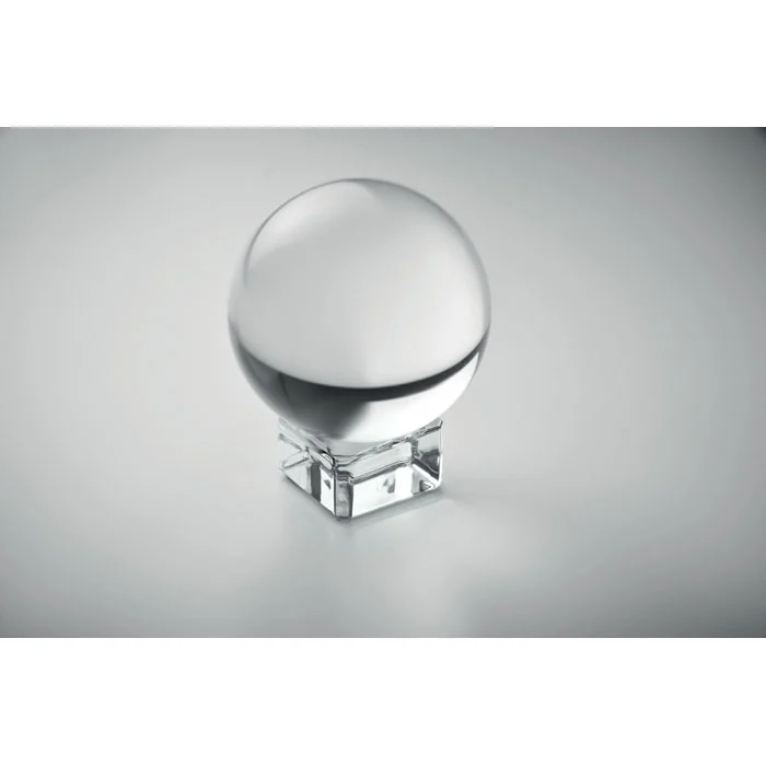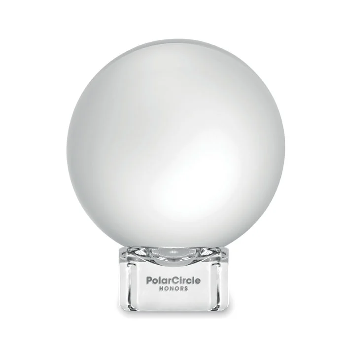 Prix ou trophée sphérique en verre avec socle. Présenté dans une boîte cadeau.