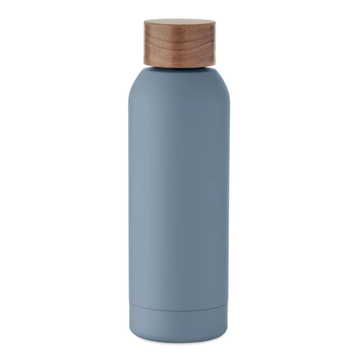 Bouteille à simple paroi en acier inoxydable recyclé à 90 % et acier inoxydable à 10 %, avec finition en caoutchouc et couvercle en bois d’acacia. Anti fuite. Capacité : 700 ml. Comme il s’agit d’une simple paroi, un transfert de chaleur peut encore se produire.