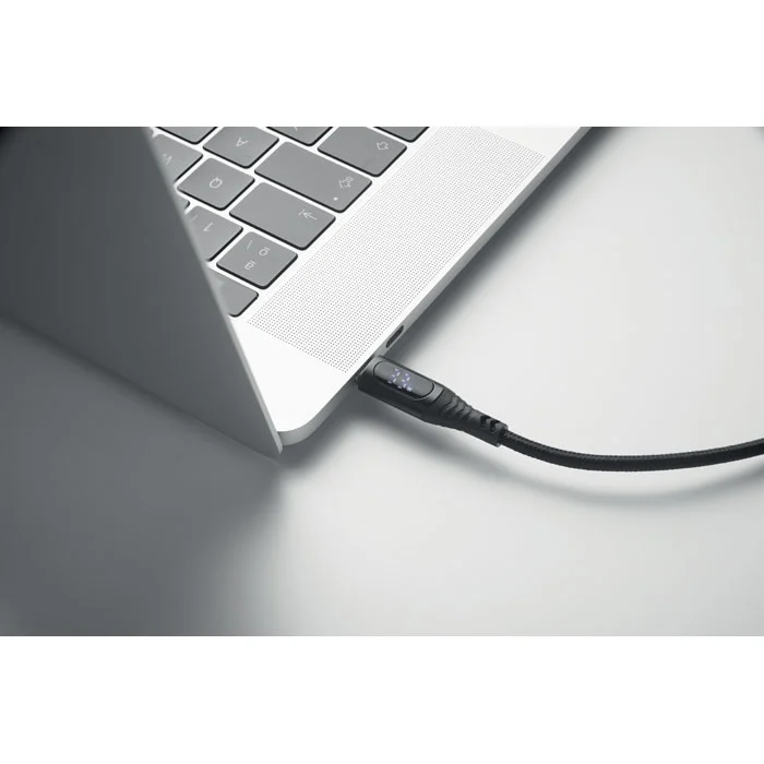 Câble de charge et de transfert de données jusqu’à 100W type-C vers type-C avec écran LED et affichage de la puissance de charge. Longueur 1M.