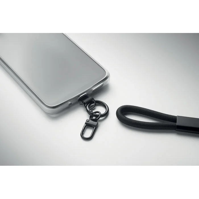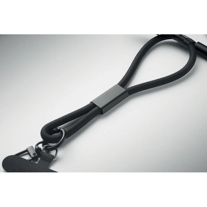 Câble / bracelet de charge et de transfert de données de type-C à type-C 60W en RPET avec support de cordon de téléphone et accroche-clé.