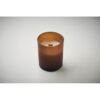 Bougie en cire végétale parfumée à la vanille 80 gr dans un pot en verre avec mèche en bois. Durée de combustion 14 heures