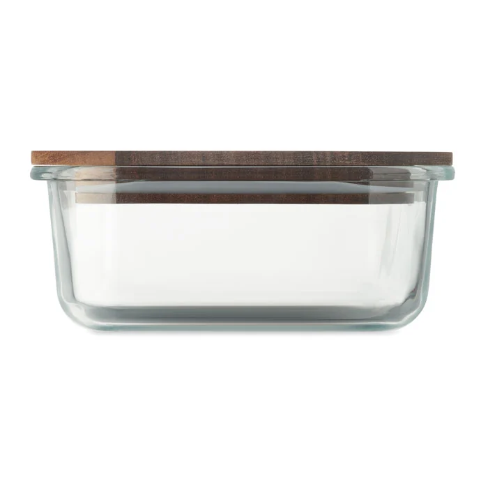 Boîte à lunch en verre avec couvercle en bois d’acacia et fermeture à élastique en RPET. Capacité : 800 ml FSC®-certified | FSC 100%, W16.3, FSC-C213206