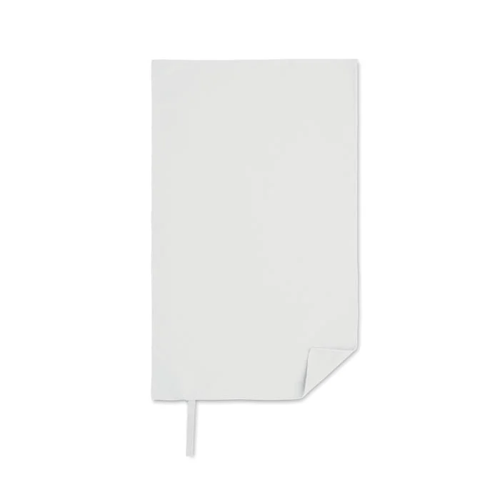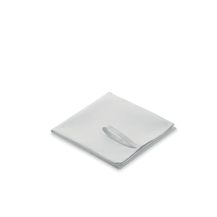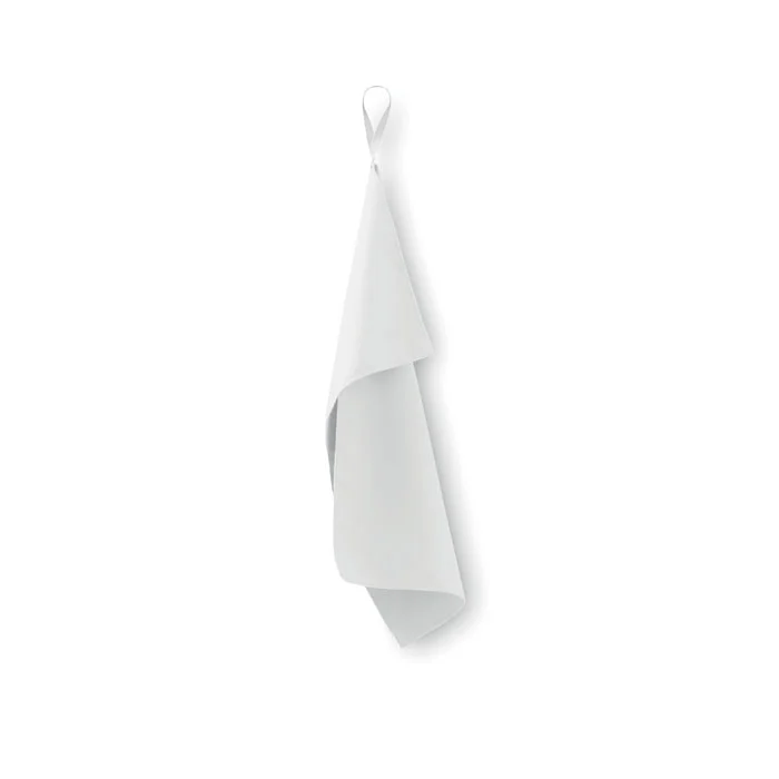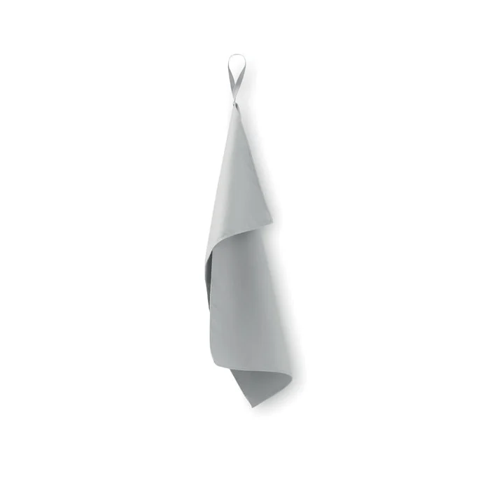 Serviette en microfibre composée de 90 % de polyester et de 10 % de polyamide, avec attache élastique. Légère et à séchage rapide. Taille 30×50 cm.