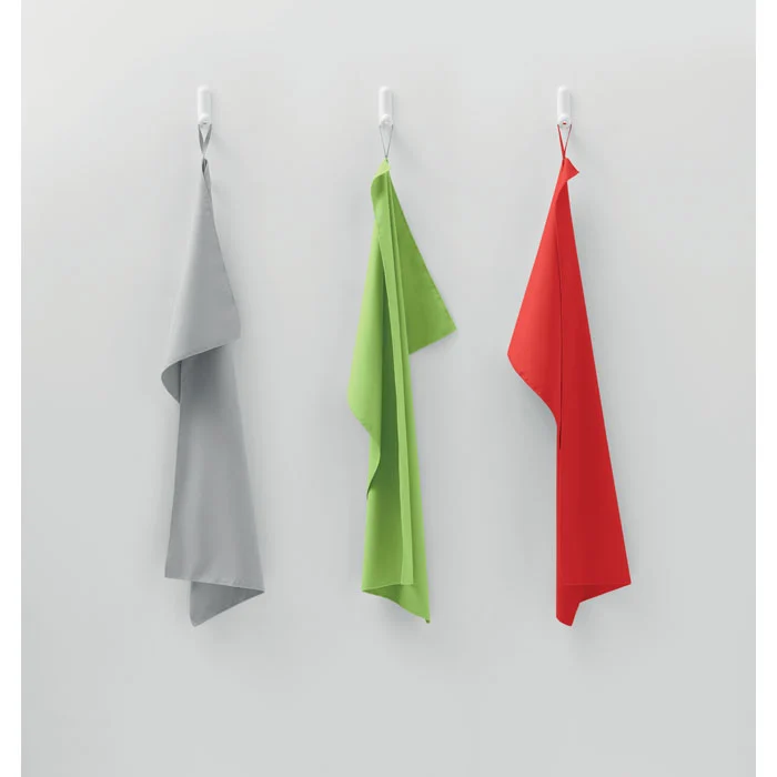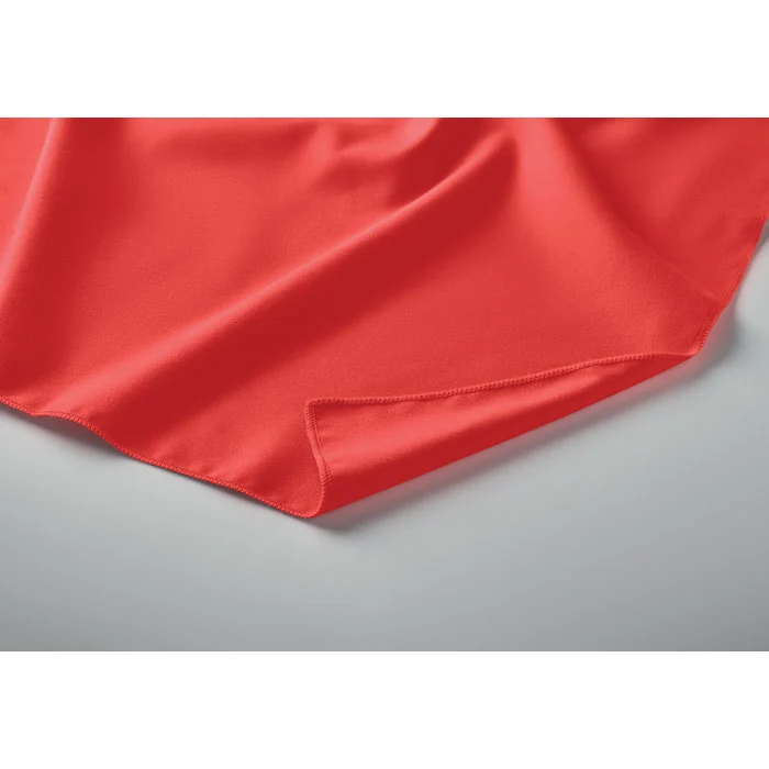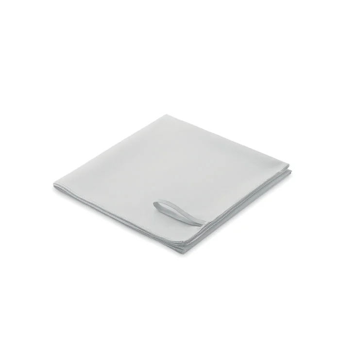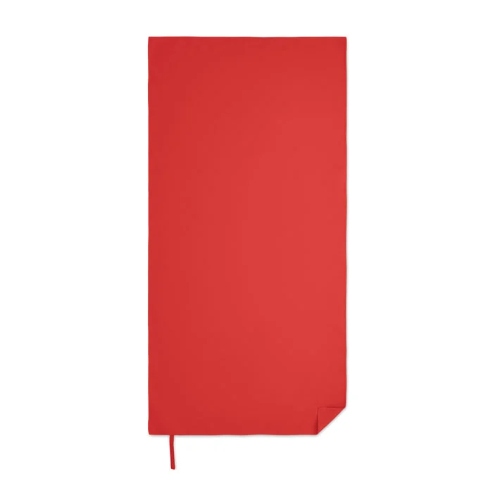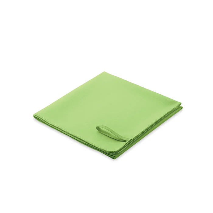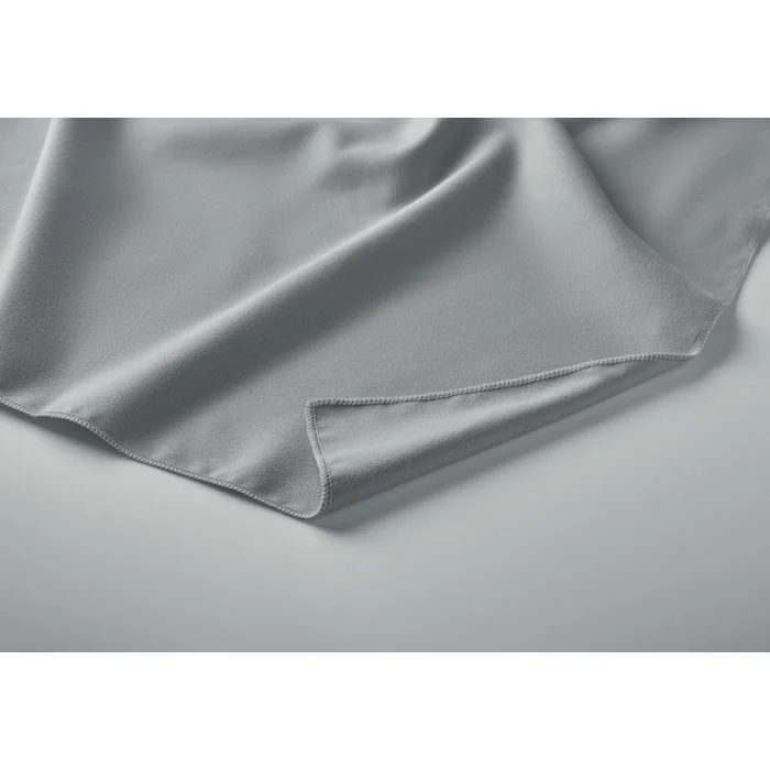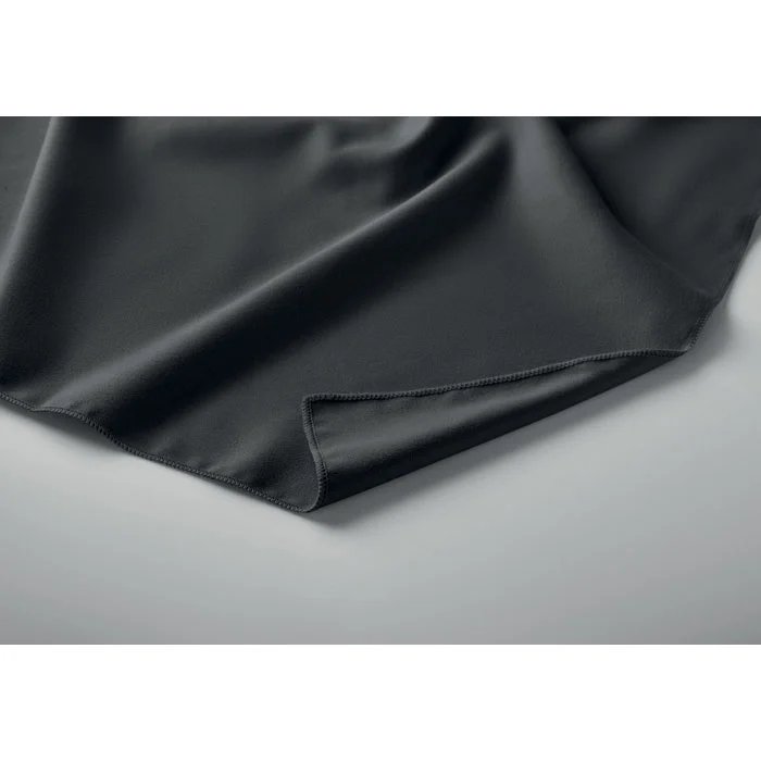 Serviette en microfibre composée de 90 % de polyester et de 10 % de polyamide, avec poignée élastique. Légère et à séchage rapide. Taille 50×100 cm.