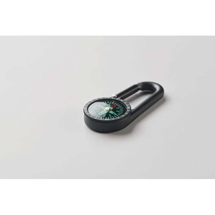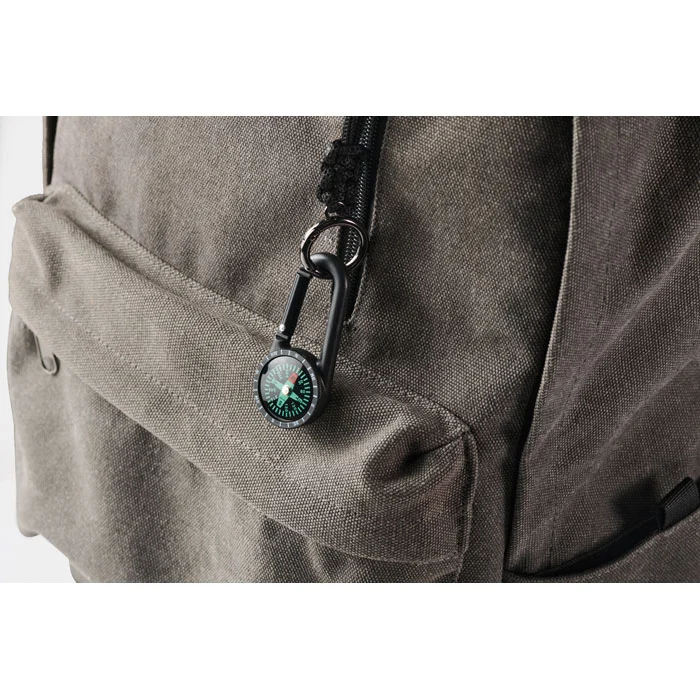 Boussole extérieure en ABS avec mousqueton. Le mousqueton n’est pas destiné à l’escalade (usage non professionnel).