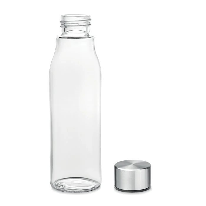 Bouteille en verre avec couvercle en acier inoxydable. Contenance : 500 ml. Ne convient pas aux boissons gazeuses. Anti fuite.